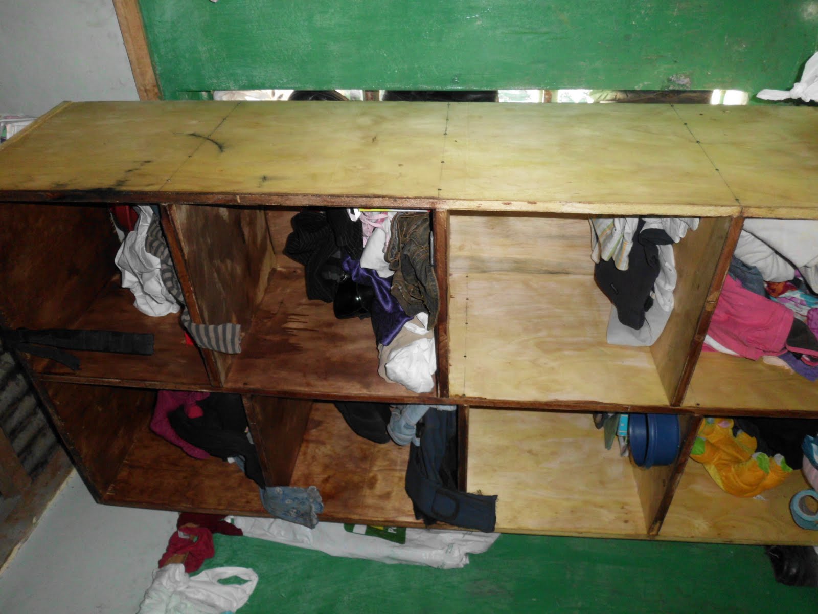 3. Mr. Lusweti baute außerdem 5 Schränke in denen 40 Kinder ihre Klamotten aufbewahren können. Dadurch hat sich die Ordnung und Hygiene im Heim um einiges gebessert. Dafür gesorgt hat Anne Sophie Rettel, die schon mehrmals im Heim arbeitete und in Deutschland Spenden sammelte.